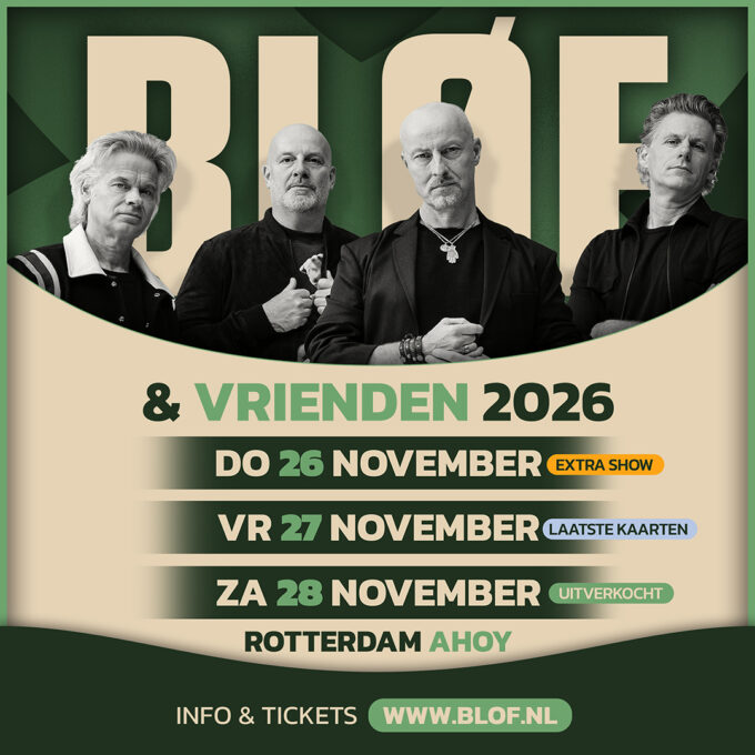Oké, nog eentje dan… we spelen in november drie BLØF & Vrienden shows! Het extra concert is op donderdag 26 november 2026 in Rotterdam Ahoy. Kaarten zijn vanaf nu verkrijgbaar via blof.nl/ahoy